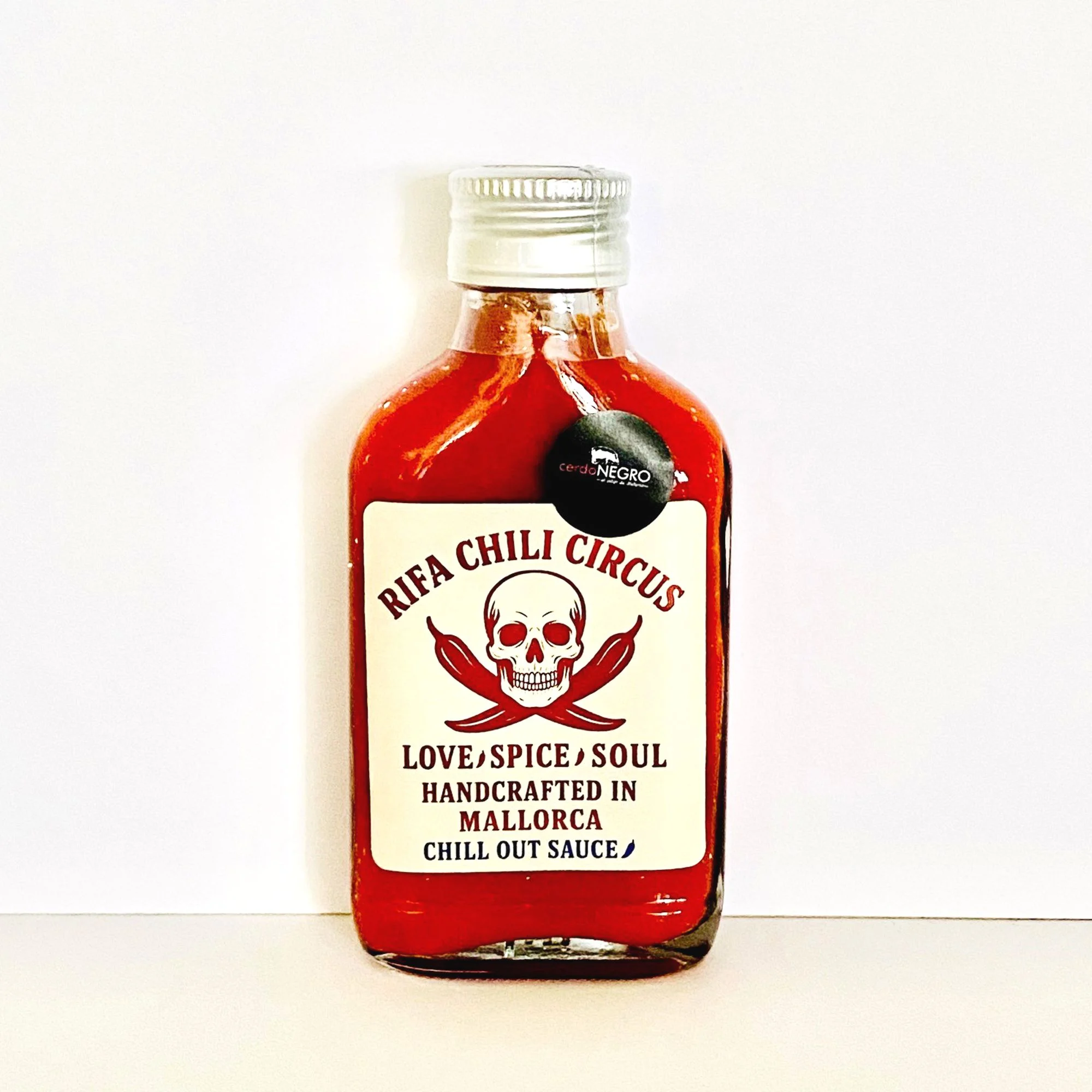Milde, fruchtige "Chill Out Sauce" aus Mallorca. Handgemacht von RiFa Chili Circus. Bringt dir den Mallorca-Taste direkt nach Hause. Nur natürliche Zutaten. Frei von Konservierungsstoffen und Zusatzstoffen. Nur 100% Geschmack und Chill-Out für deinen Gaumen. 100 ml Glasflasche